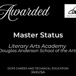 The Literary Arts Academy at Douglas Anderson School of the Arts is excited to announce that we are officially a Master Status Academy! All students enrolled in the Creative Writing Department at DA are also enrolled in the Literary Arts Academy. This provides our students with an incredible array of opportunities such as field trips, guest artist visits, equipment and software related to digital media and publishing, and more! Some quick stats about our academy: